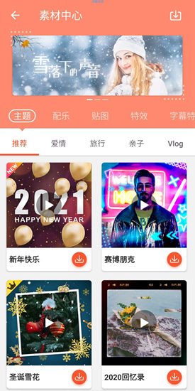 -拥有海量精美的模板与贴纸供您选择使用,包括卡点、表白、婚礼、生日、相册MV等类型,