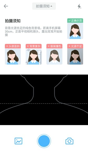 精英证件照严格的证件照相机拍摄环境检测,对人眼线、眼睛视线、双行云路、肩膀水平、光照充足、光线的均匀进行检测,确保证件照准确率,给用户更好的证件照体验。