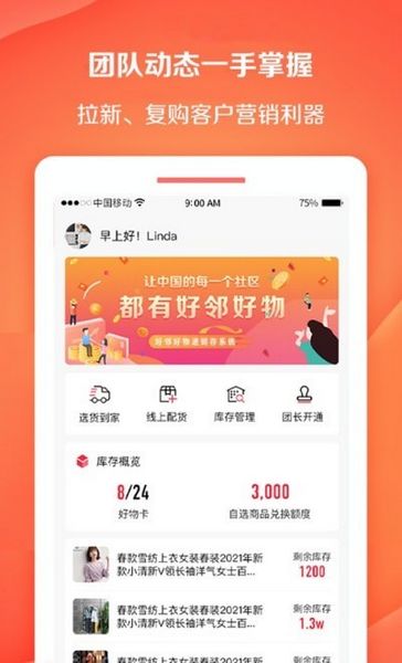 好邻好物APP不仅提供了丰富的商品选择供货商购买,还可满足消费者不同的消费需求;好邻好物APP旨在帮助中小微企业快速解决进销存、库存、财务等问题,并获得更多增值服务。好邻好物APP涵盖服装服饰、家居百货以及数码电子产品等多个品类,满足不同用户的多样化需要,并且我们还将持续推出更多的优惠活动,让您享受实实在在的实惠。好邻好物APP不断优化迭代,确保给客户带来更好的使用体验。好邻好物APP也为合作伙伴提供全方位的数据支持,助力商家建立完善的生意体系和稳定的交易环境,为亿万店主提供一手货源直连供应商,让生意更好做。