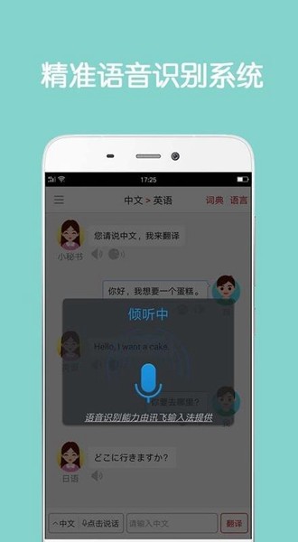 2、同声翻译超级版采用先进的人工智能语音识别技术,准确率高,即使没有任何打字或输入错误的情况,也能得到精准的翻译效果。
