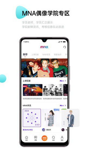 Mna偶像学院app是专为韩流爱好者设计的学习软件,拥有海量韩流粉丝在线交流互动社区。用户可以在这里结识志同道合的粉丝朋友一起讨论各种韩流明星资讯和动态等等信息!需要的朋友快来下载吧!