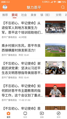 魅力恩平是专门为恩安的市民所打造的一款生活资讯服务软件,它主要是为人们提供恩清县的最新新闻信息、电视直播等等资源。在这里拥有着新闻版块和政务版块模块可以供用户进行使用;在这个应用软件中还有着便民查询功能为你推出诸多的生活业务办理入口模式以及本地化的民生动态内容等你查看了解,