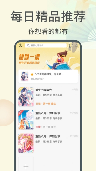 倾心一读一款超级好用的支持在手机端进行阅读类APP,软件内置丰富的资源可以满足不同用户的喜好需求,自带排行榜单让您根据热度排序随意筛选想看的小说类型为您推送感兴趣的书籍全部免费看,喜欢追更的用户快来下载试试吧!