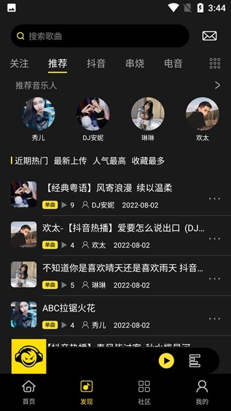 2、【智能推荐】搜罗了时下最热火爆的DJ嗨曲,让你每天都有不一样的声音。