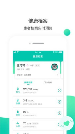 预约挂号:随时随地的通过APP查看医生开具的处方单及就诊资料并选择合适的时间段即可接诊。
