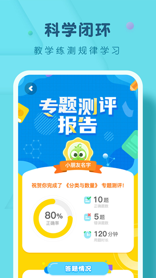 根据孩子的学习情况生成个性化测评分析报告,随时了解孩子的学习动态;