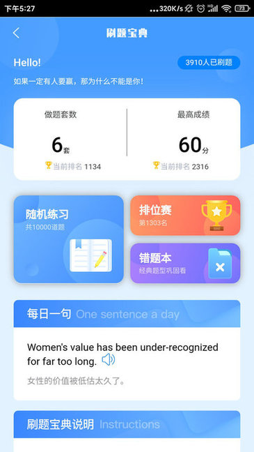 针对每个考生的不同水平推荐相应的测试题型供考生选择与训练,