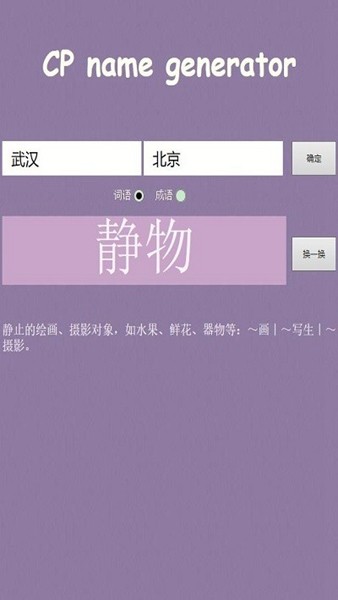 1、打开cp名字生成器app,点击生成自己喜欢的cp名字。