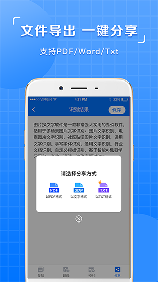 图片识别文字提取软件是款方便好用的手机扫描app,开启之后用户们可以快速获取到我们需要的各种信息内容。帮助我们完成拍照和导入选择功能超简单很适合我们进行使用哦