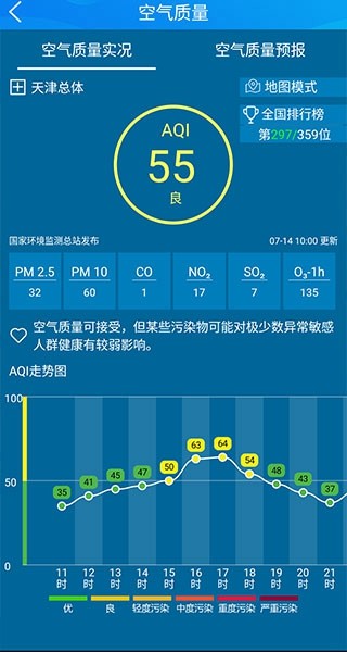 由气象局专业人员逐时逐刻对市县区天气实况及温度进行全方位监测,为您呈现当天的天气状况与未来7天内的空气质量、风力风向和湿度等关键数据,让您能更好的了解当天的天气情况。