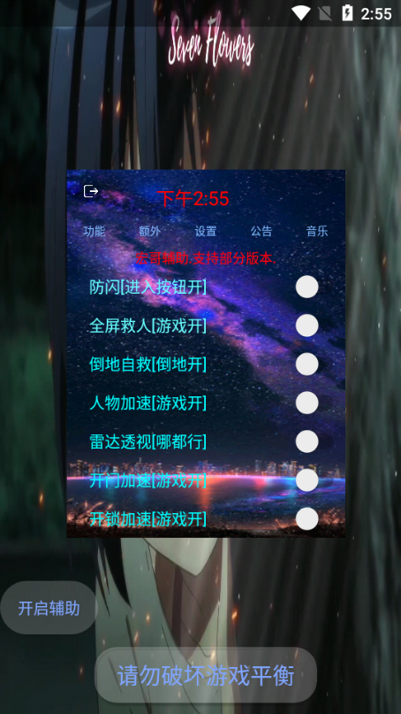 集成多种辅助的功能,如悬浮窗管理、画质调节、地图定位、防作弊等。