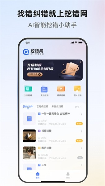 挖错网是一款帮助用户随时随地记录错题信息的应用。通过挖错网APP可将错题快速上传至手机、网页等多种设备中;让学习生活更轻松便捷。挖错网提供方便实用的错题本与云端同步备份技术,为用户实现错题自动归档及复习管理服务。
