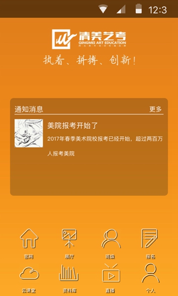清美的艺术考是为广大考生打造的美术生、学生必备的专业教育助手。提供包括历年的真题模拟测试、名师讲课等功能;拥有专业教师视频授课及直播课程内容与权威专家交流互动分享教学经验于一体的综合性艺术类学习APP,专注于美术生、K12美术类学生的学习需求,助力学生快速提分!