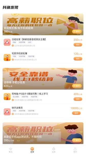 抖鱼招聘一款超级好用的可以帮助用户在手机端进行求职服务的APP,软件内置海量丰富的职位信息资源涵盖不同行业的招聘信息让您随意挑选性价比高的工作更加安全可靠,有需要的用户快来下载试一下吧!