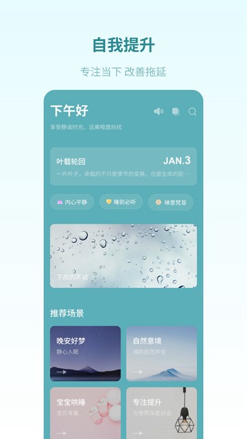 从基础的呼吸法开始,梵老师将为你提供一系列精选的助眠课程供你可以选择,包括减压放松的钢琴曲以及安抚压力和舒适度的氛围音乐,让你在轻松愉快的环境下拥有一个理想的心情和身体。