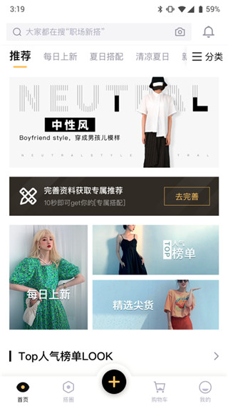2.“逛”专区:在这里可以找到自己想要的服装搭配方案以及其他优质内容供你参考选择;