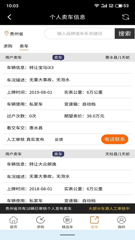 5、【快速售卖】:支持手机端随时随地轻松出售闲置二手车以及个人品牌二手车品。