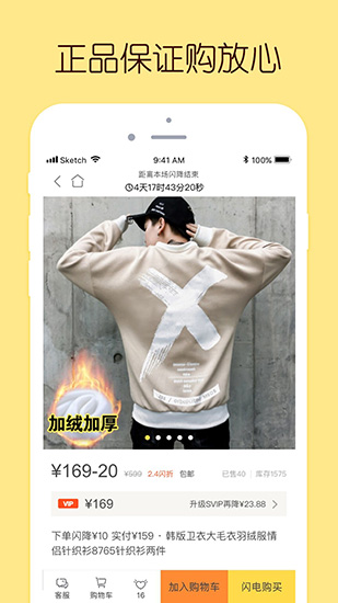 7,安全可靠:闪电降价APP拥有强大的售后服务体系,完善的售后流程,确保用户的交易过程的安全稳定无忧。