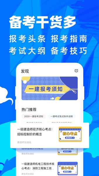 一建考试app涵盖一级建造师、二级建造师、注册造价工程师、一级安全管理师,一级建造师,注册监理工程师等一级建筑工程考试题库。一级建造师宝典包含考试大纲所确定的范围以及历年真题集模拟试题题型,题海战术练习,是您在学习乃至通过考核的好帮手.