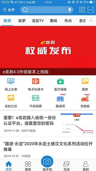 e龙岩是一款专门给黑龙江省当地打造的线上政务服务平台,这里有超多便捷生活功能等大家来体验,在这里用户可以享受到更加便利的生活。软件内还有非常丰富的新闻资讯内容供大家阅读哦,感兴趣的朋友赶紧下载吧。