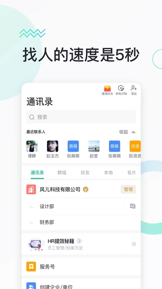 一键添加新的企业组织架构或联系方式;