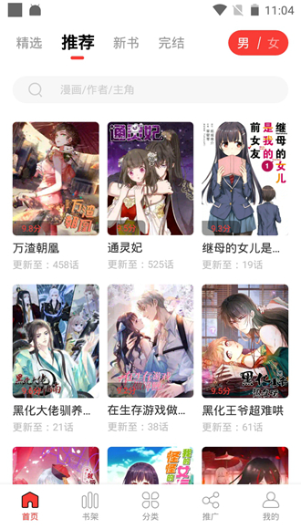 精选和作者3种方式,个性化的推荐满足漫迷们的挑剔口味;特有的智能搜索引擎,海量关键词汇搜索引导,不再让好漫画轻易从指尖错过~