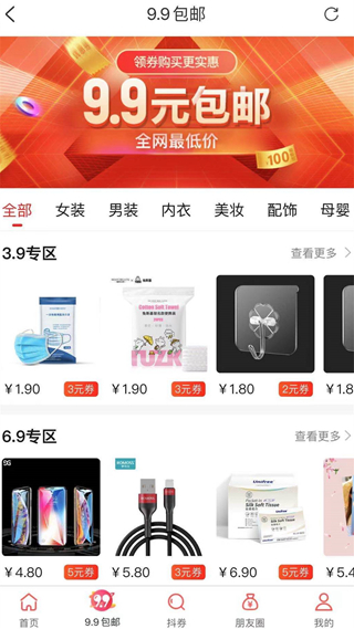 3、【9块九包邮】精选商品,低至7元包邮,物美价廉,件件都包邮。