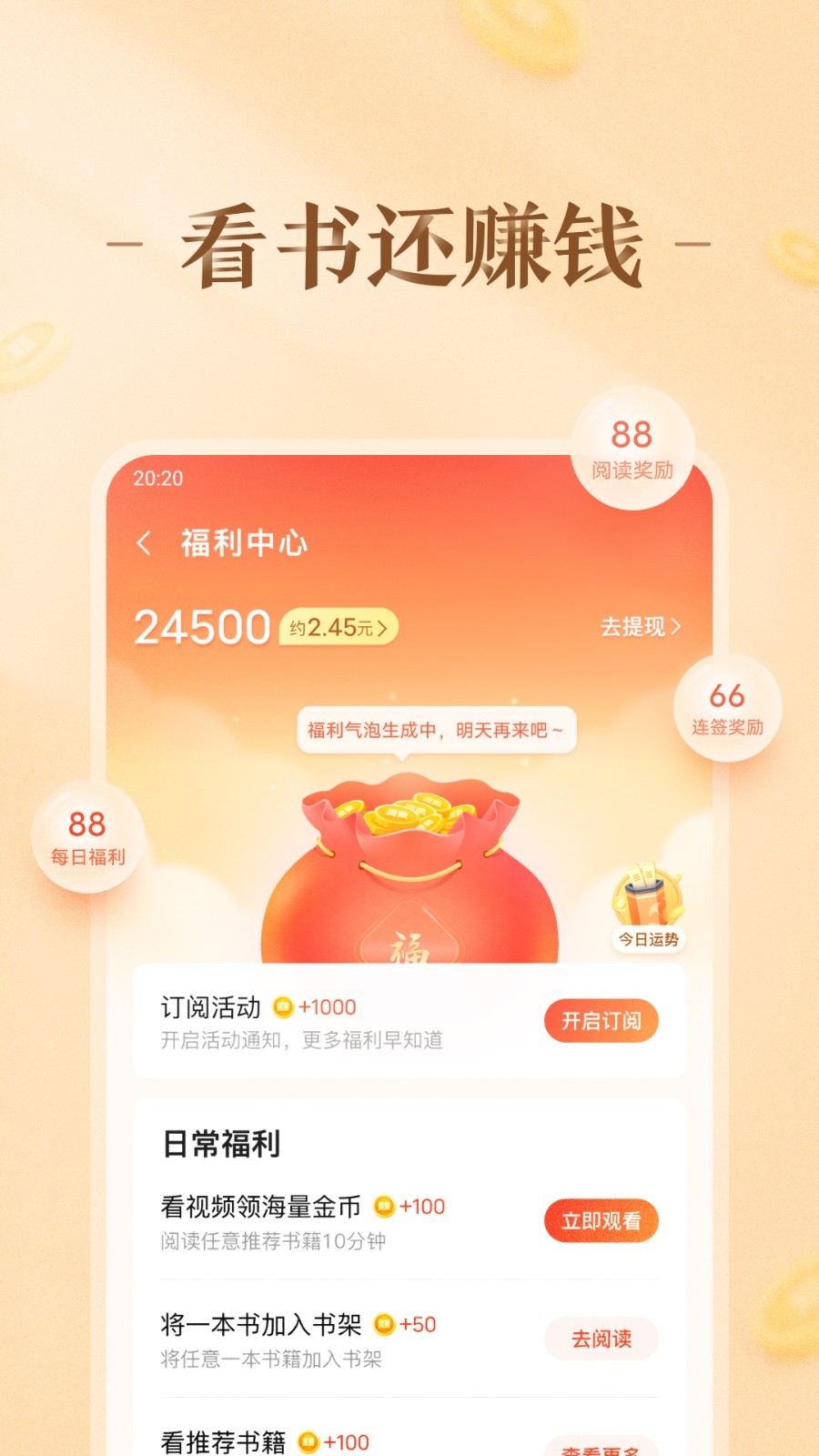 【正版小说】百万正版小说全部完结全本精排版,告别乱码错字,静享阅读趣味。【分类齐全】小说类型涵盖总裁豪门小说、言情小说、穿越架空小说、玄幻小说、青春校园小说、修仙小说、悬疑灵异小说、经典名著、红文爽文、虐心言情小说、武侠小说、科漫小说、职场励志小说、文学图书等几十种题材的网络小说大全,你想要的我们都有!【兴趣定制】根据你的阅读爱好为你专属打造,每天都是新的快乐源泉。【云书架】自动保存浏览记录,更换设备完美衔接,阅览无余;支持本地阅读,缓存在手机里的图书,随时随地,轻松畅游书城。