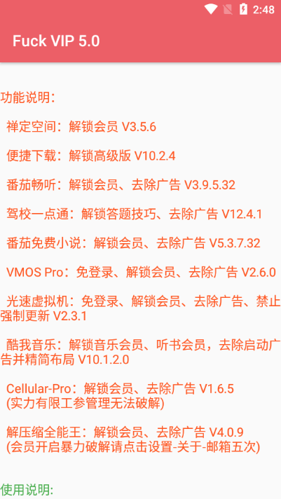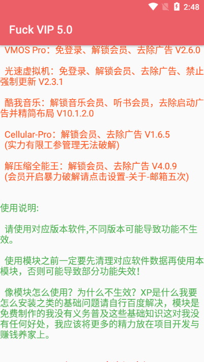 vip 软件vip解锁Xposed模块又名Fx64件,一款专门为QQ修改器打造的刷机神器,安装后即可享受高级版功能体验,无需root就能快速开启所有功能模式哟,运行稳定性非常强!欢迎下载!