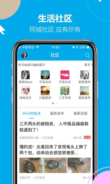 平昌零距离app是平丰县本地居民打造的生活服务软件,在这里能够轻松进行生活的各种信息的查询。快捷了解当地最新资讯内容