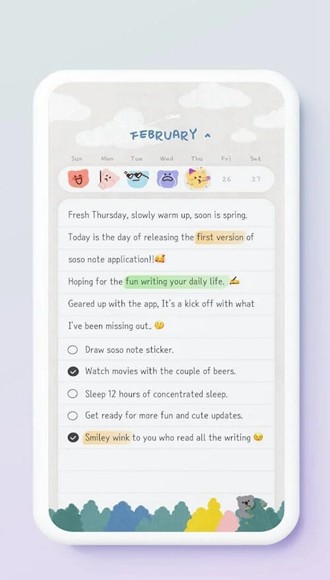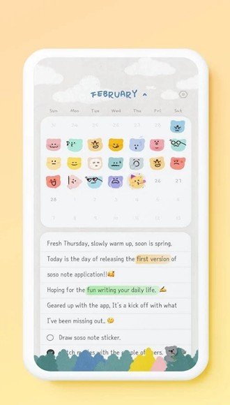 note是一个画风非常可爱的日记本app Syox一款超级实用的可以在手机上对任何内容进行记录并分享给身边朋友的应用软件,软件内置超多丰富的工具和素材让您随意添加背景、字体等元素更加美观且有趣还可以在图片与视频之中更好的完成相关工作学习哦,欢迎下载使用!