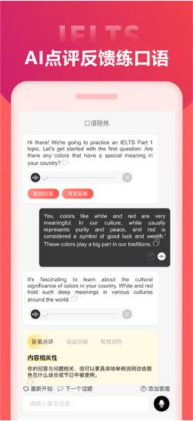 3、专业评分标准:基于国际权威测评模型,应用先进的人工智能技术自动判断每个对话者的口语程度,以满足不同需求的专业人士的需求。