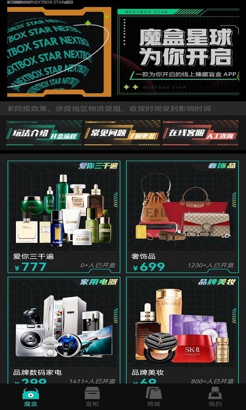 魔盒:提供各种各样的二次元的商品选择,包括手办、数码产品、美妆个护、潮流服饰、生活百货、潮玩周边、美食等多种多样;