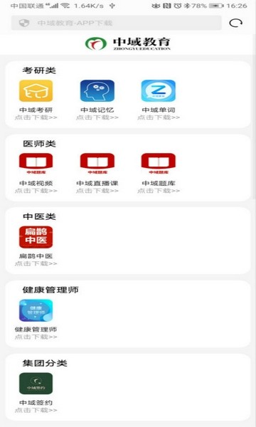 中域教育是北京医学科技发展有限公司旗下一款专注于医学专业技能提升、职业发展及职业资格考试服务的手机app,以“助力执业药师,为职称护航”为宗旨,致力于通过移动端实现与PC端的数据同步操作,帮助用户轻松高效地备考。中科教集团(简称:中国医药大学)系知名医疗机构联合推出中联网教育,是目前国内首家面向社会开放的互联网+教育综合服务平台!中盟教育为全国范围的医生、护士、健康师等提供一站式全天候诊疗解决方案。