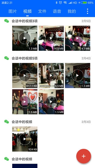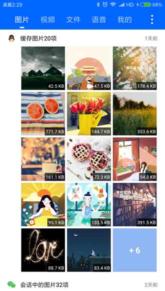 7.“QQ”模块内置了“我的文件夹”选项,点击即可浏览所有需要保留的内容。(支持批量整理)