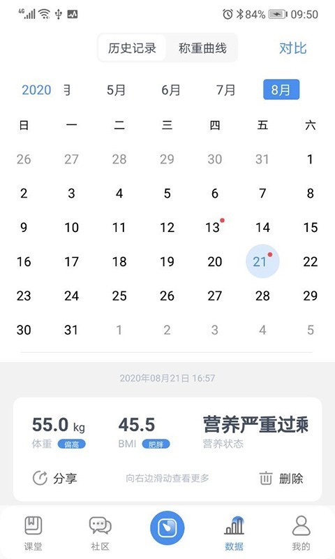乐享减重的app可根据用户的个人数据智能生成报告并分析你的运动状态与身体数据变化。