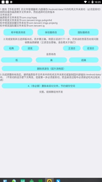野樱画质助手三楼版适合吃鸡的手机软件,适用于各种吃法游戏以及和平精英等手游上使用,一键调整超高清画面分辨率让你享受更清晰的画质体验,还可以进行灵敏度调节哦,有兴趣的朋友欢迎下载!