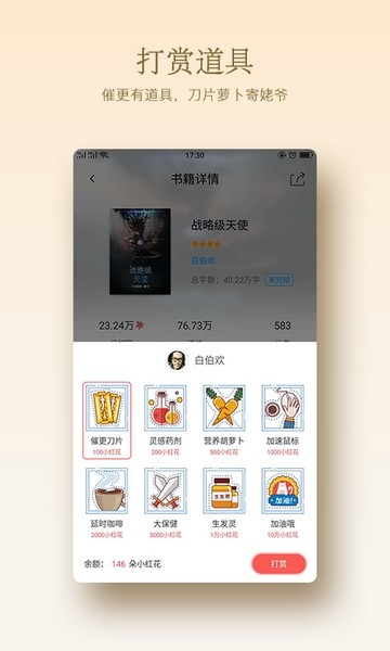 【分类齐全】全类目热门图书随意看,玄幻奇幻、武侠仙侠、都市言情、历史军事、科创二次元、游戏竞技、穿越宫斗、惊悚悬疑、历史军事、官场权势、职场的实战、经典图书等各类小说应有尽有; 【个性推荐精准贴心的观书助手】精选个人喜爱的好书,大数据智能推荐帮你发现最好看的书籍; 【流畅听书更有意思的阅读器】耳朵“看小说”,呵卫生宝宝双手不伤视力;仿真等多翻页效果,支持自定义阅读设置; 【强大预读功能释放你的脑洞】自动缓存本地,离线也能浏览想看的书籍;智能识别文字排版,无乱码,无错字,清晰标记广告; 【实时监测】智能监测关注小说动态,最新小说及时更新提醒,第一时间看更新。