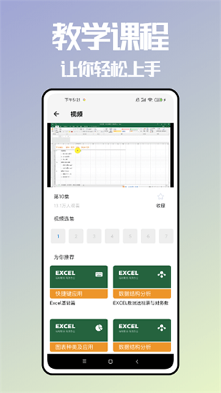 excel学习图片表格展示编辑文字识别软件手机版适合对excel进行使用的app,有详细的图表信息分析和函数教学视频可以观看、理解与使用。支持在线制作文档文件或PPT等内容哦,操作非常方便!