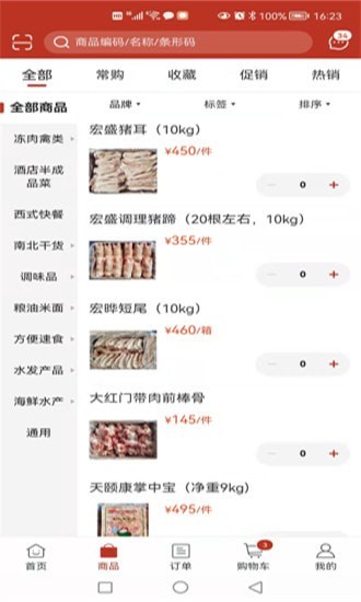 1、进入菜品界面后,点击“添加菜品”。在页面中输入菜品名称或描述(包括名称、生产日期)或者品牌名,如有需要就可以加入购物车一键结算啦