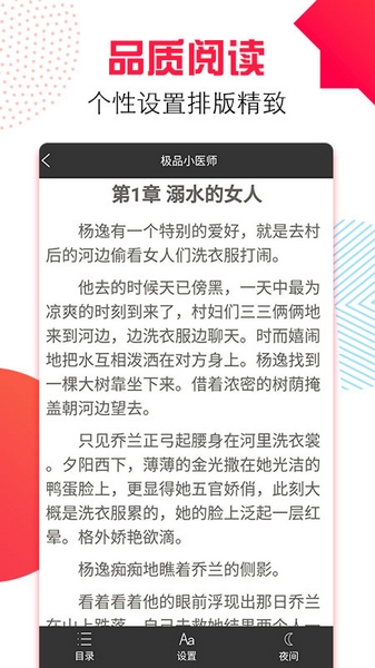 6、人性化设置:简洁舒适的阅读界面,可根据喜好任意切换字体、背景和翻页模式;