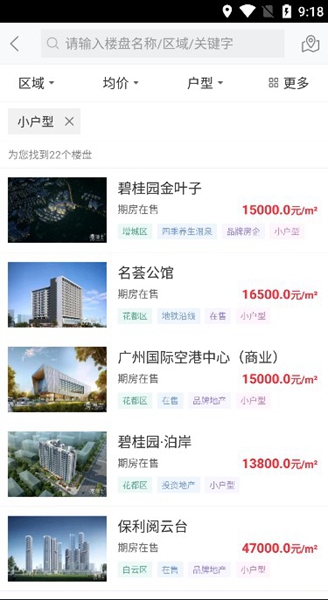 【楼盘查询】方便快捷查找全国楼盘资料(包括户型、面积、朝向、面积等);详细展示各区县楼盘房价信息;支持多种筛选条件组合检索结果;