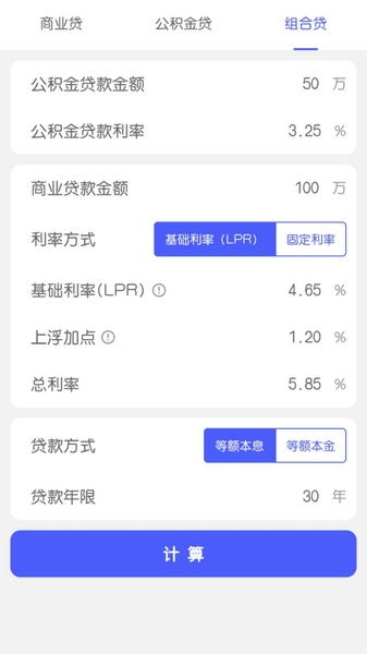 包含房贷计算器、提前还清算/还款本金计算器、房贷进制转换器、贷款对比大全、贷款指南等多个模块内容,