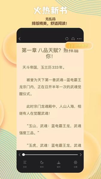 [个性化设置]背景颜色、字体、行距任你挑;自定义排版、书签模式、夜间模式等特色功能让你畅享阅读趣味。