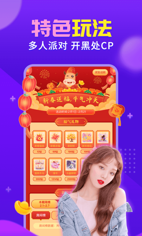 你可以选择喜欢的人来听歌、唱歌,也可以进入房间中开黑。