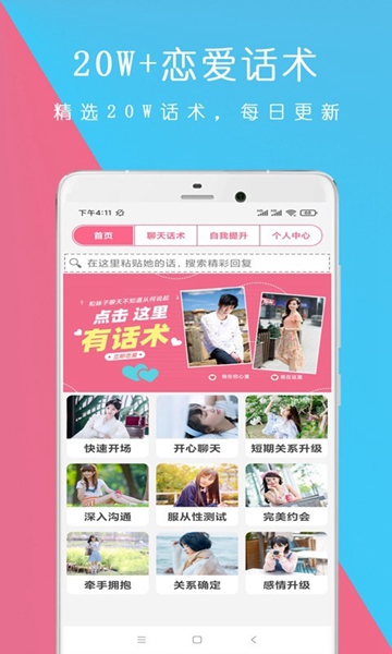 恋爱教学从入门到精通,为你定制专属的恋爱话术课程,提升你的恋爱技能,让你轻松学会说话技巧,迅速提高你的情商。