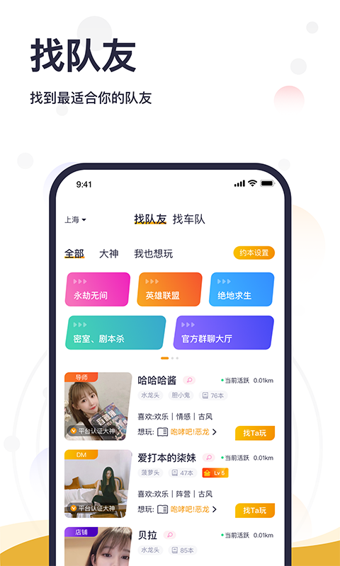 2、随时随地开黑,轻松畅聊,一键快速匹配。