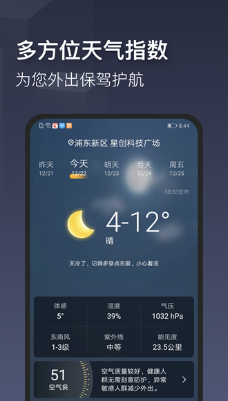 【空气质量监测】认真呵护您的身体健康,从穿衣、紫外线、舒适度等维度给您提供决策依据.