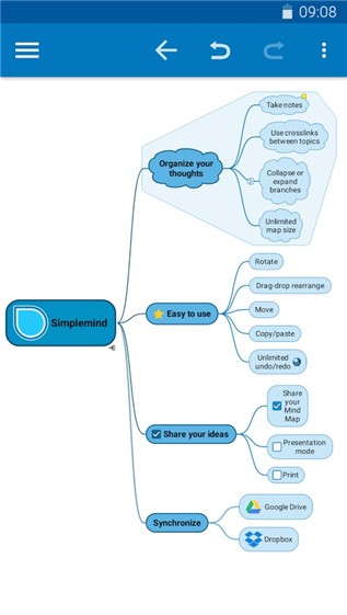 Pro是一款超直观的思维导图软件SimpleMindpro是款简单好用的手机思维导图软件,在这款app中用户可以在线制作各种思维导图内容,而且app已经解锁会员高级版的功能全部都可以免费使用,喜欢的小伙伴快来下载试试吧!