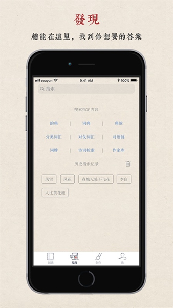5、精选优质诗词曲库,为你打造一个专属诗友社区,共同探讨诗人心得。